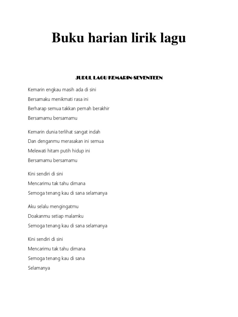 RESENSI BUKU MENAPAK JEJAK KHALIL GIBRAN IDENTITAS BUKU Judul Buku. Lirik Lagu Buku Harian - Adista kenangan kasih bersamamu tak mungkin ku lupakan tertulis dengan tinta biru di dalam buku harian. Lagu ini mengisahkan tentang seseorang yang selalu menulis kenangan dari orang terkasihnya pada buku hariannya.